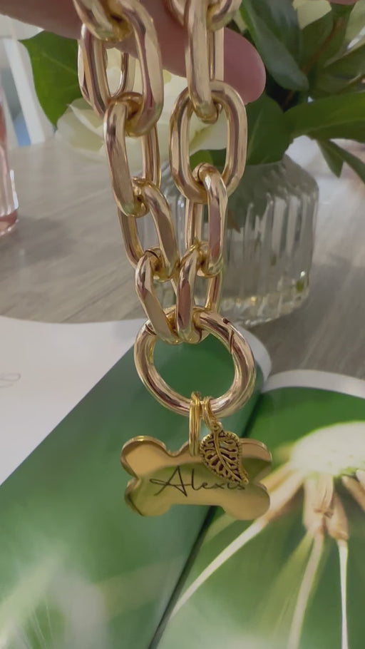◆ Model Info ◆ ◆ Font shown on tag: Font #3 – Autography◆ Dog model is wearing 36mm (small) engraved bone shaped tag ✨ Luxury Dog Chain Collar Ne...