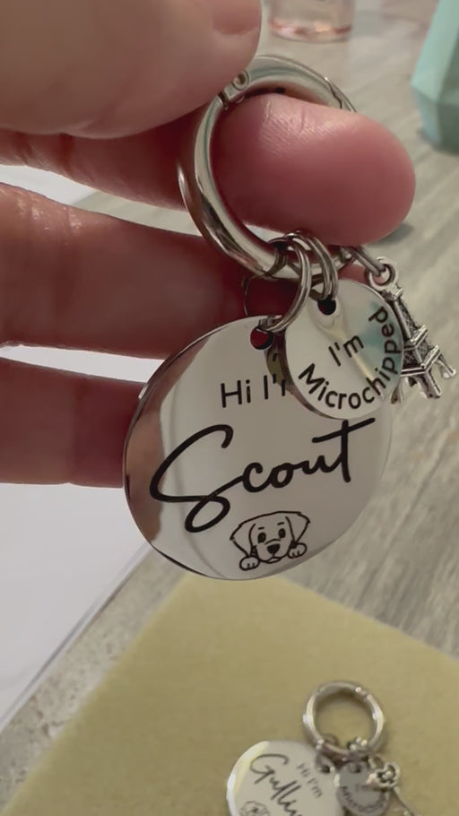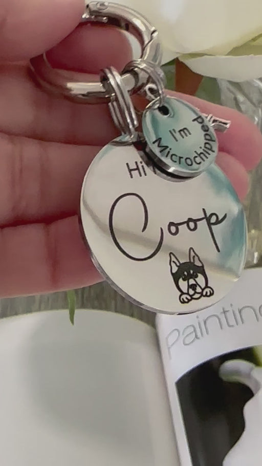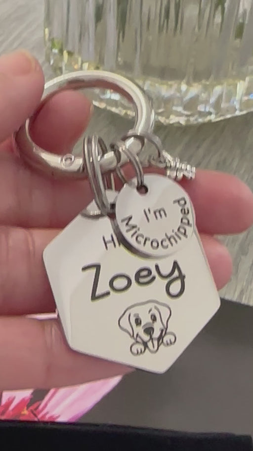 View full detailsCute Dog Name Tag with Microchipped Add-on, Personalised Dog Tag Engraved in Stainless Steel, Pet ID Name Tag, Dog Name Plate, Small Dog Tag - DT079