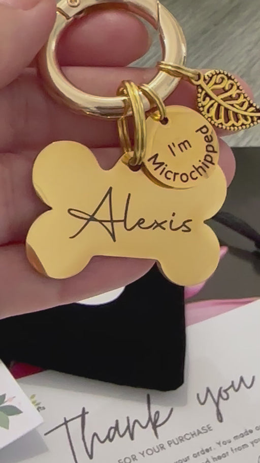View full detailsCute Dog ID Tag Engraved, Bone Shape Stainless Steel Custom Dog Tag, Personalised Pet Name Name Tag Silver Gold Rose Gold, Durable Metal - DT094