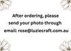After ordering, please send your good-quality photo/s via email at rose@luziecrafts.com.au. Clear, well-lit images help us achieve the best engraving results for your photo keychain or keyring.